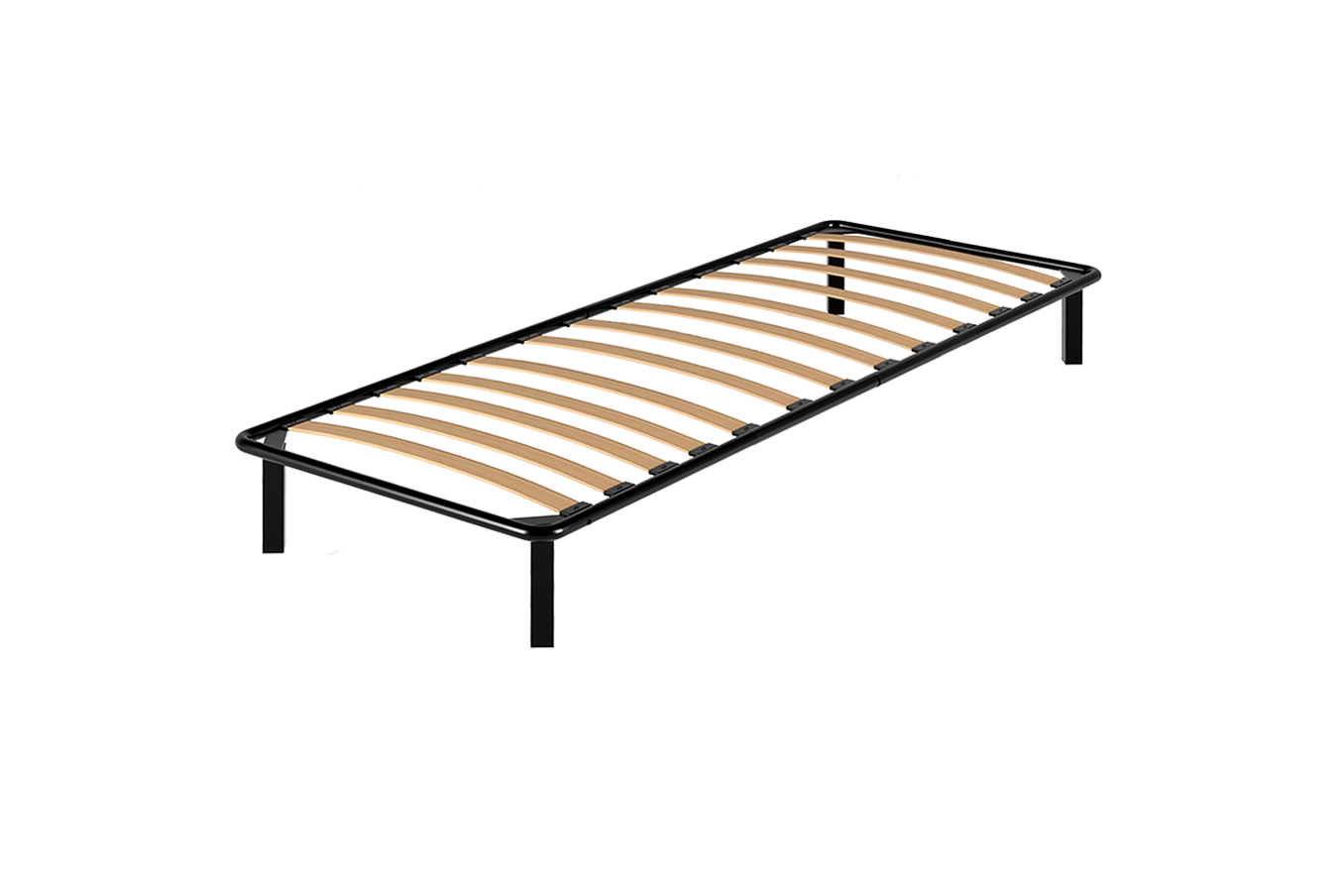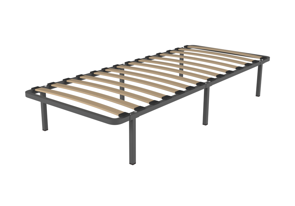 Кровать можно укомплектовать жестким основанием или основанием с ламелями. В зависимости от желаемого эффекта. Для тяжелых и высоких матрасов рекомендуем выбрать жесткое основание.