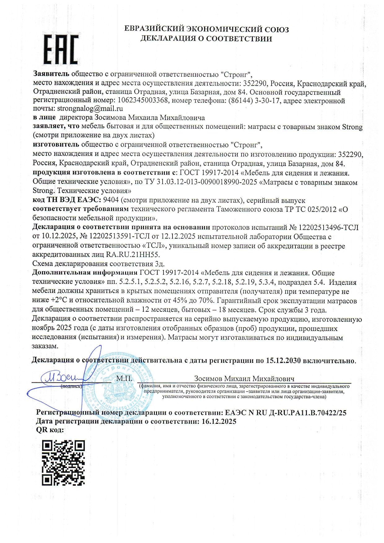 Отдыхающие, проходящие лечение в наших санаториях, треть времени проводят во сне на матрасах Стронг - и хотим сказать, что после замены матрасов нареканий на качество размещения стало значительно меньше.