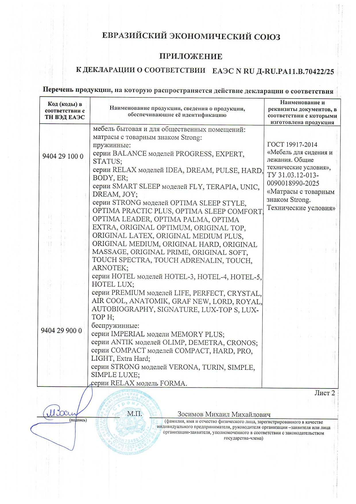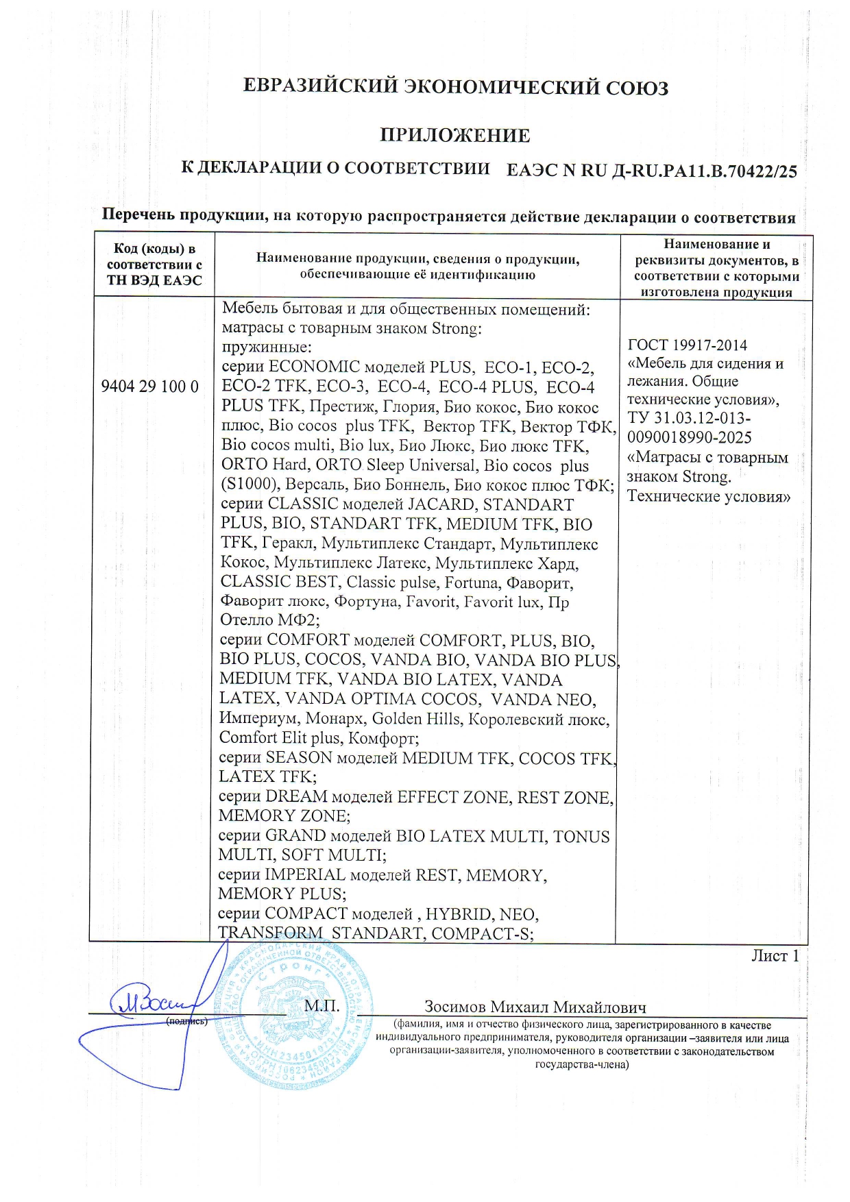 В 2014 г. купили матрас Strong Comfort Vanda Bio. Покупкой были очень довольны.